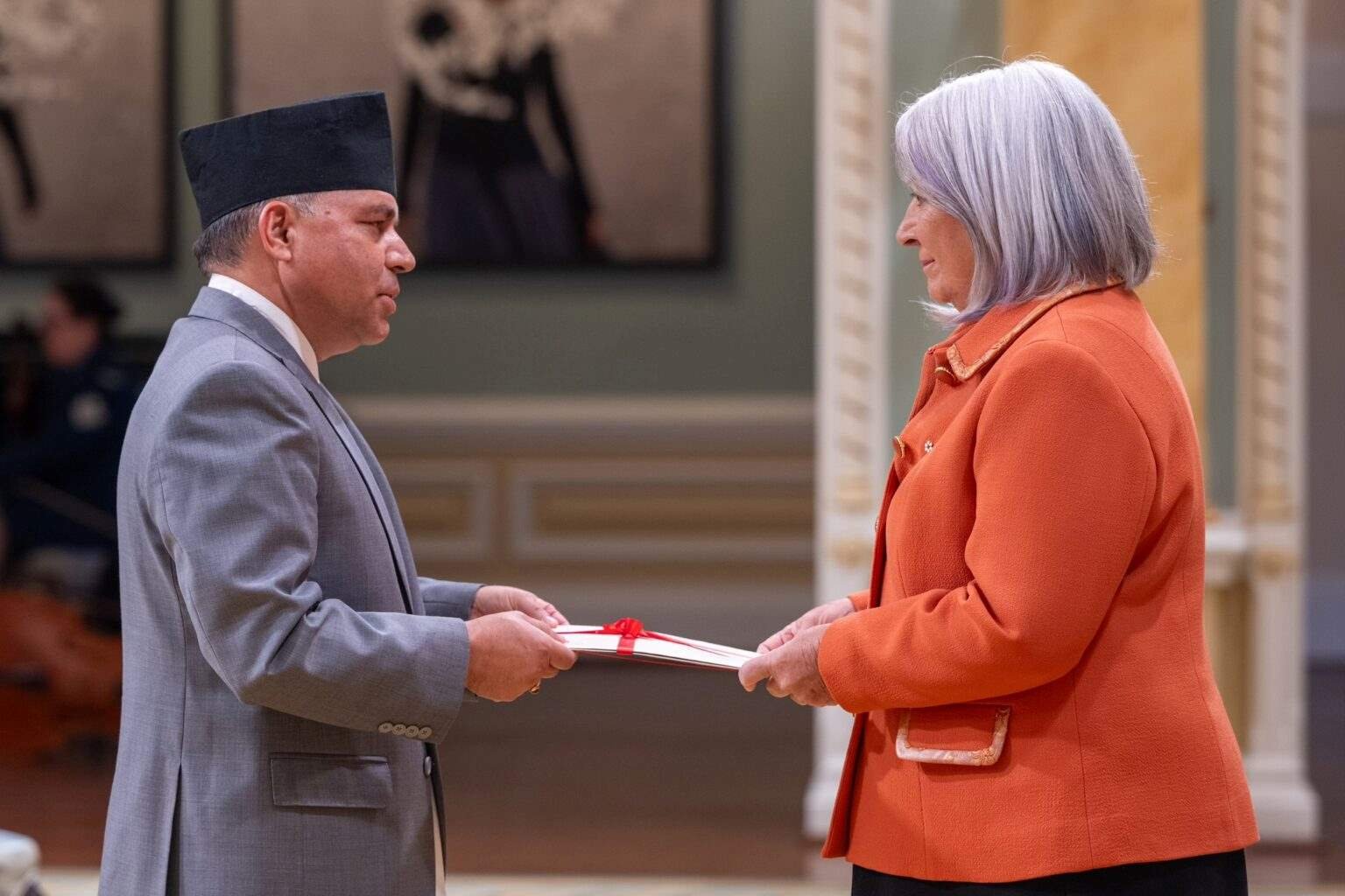 Kathmandu, May 2: Ambassador of Nepal to Canada Bharat Raj Paudyal has presented the letters of credence to Governor General of Canada, Mary J. May Simon.
