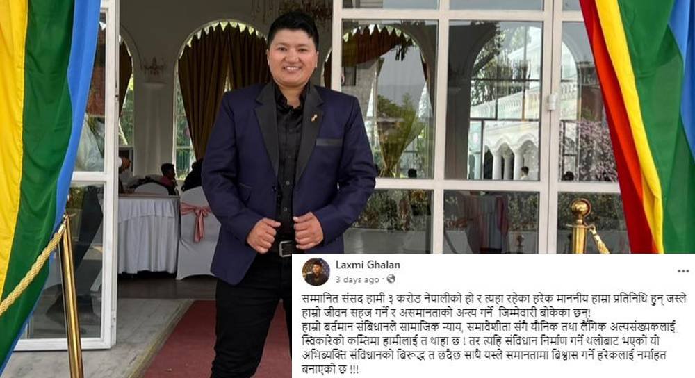 However, Laxmi Ghalan, Chairperson of Mitini Nepal, has misinterpreted the constitution by opposing the statement of lawmaker Sushila Shrestha that those who become women through a gender reassignment or a hormone therapy do not represent the feelings of women.
