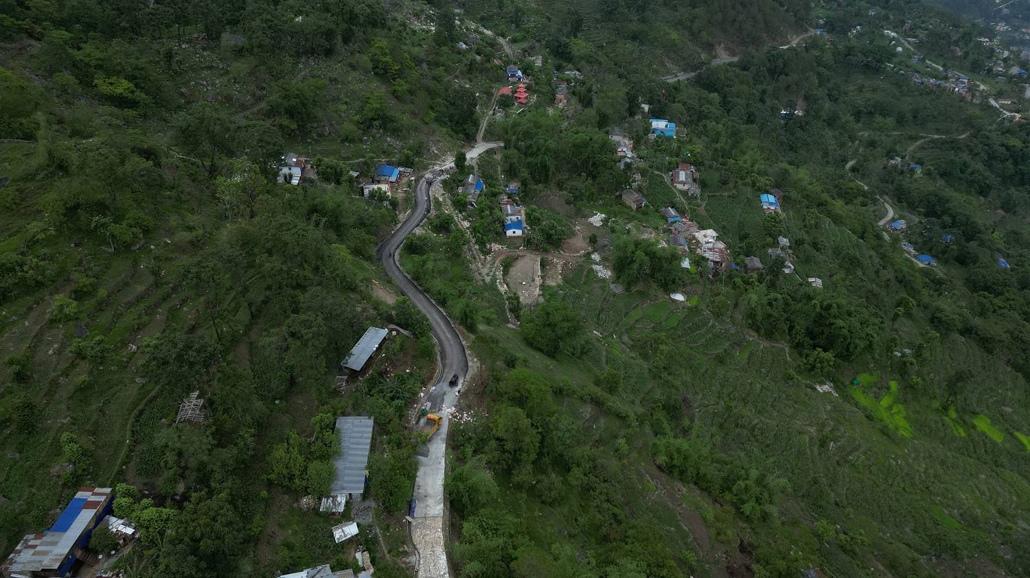 Before blacktopping, the road was widened, drains were constructed and the wall was built towards the corner. Director of the construction company, Prakash Baniya further informed.