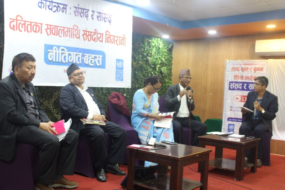 “The constitution has criminalised caste-based discrimination. But it continues to exist. The government must work hard to implement the constitution,” said Sunar, one of four panelists, who attended a discussion on parliamentary monitoring on issues of Dalits organised here on Friday by the Nepal FM Network with the support of UNDP.