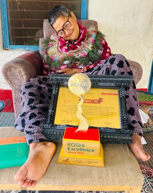 Chief Minister of Koshi Province Hikmat Kumar Karki handed the award to Ghimire at a function held on Sunday.