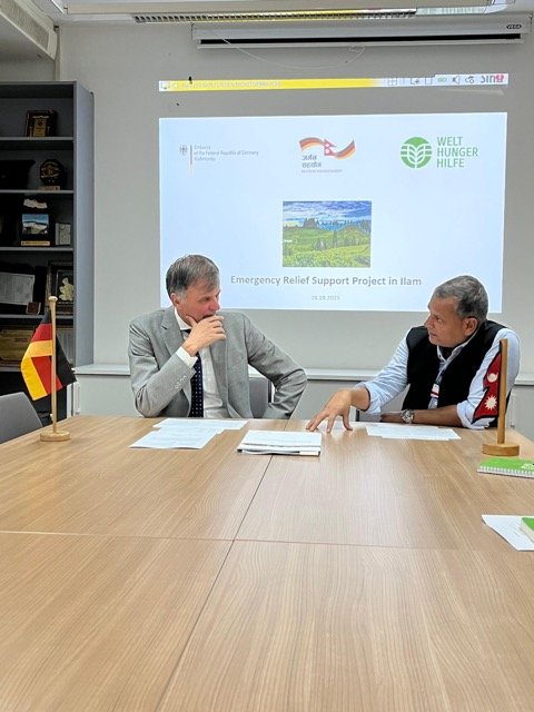 According to the Embassy of Germany in Kathmandu, German Ambassador Udo Volz signed the grant agreement of 39,000 Euros with WHH Nepal – Welthungerhilfe for a project to provide immediate relief and early recovery support to disaster-affected communities, ensuring lifesaving assistance and enhancing resilience against future disasters.