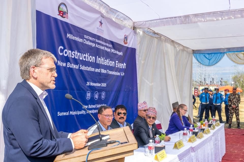 Nawalparasi (Bardaghat Susta Paschim), Nov 26: The development of New Butwal Substation and 18-km Transmission Line was initiated today at Sunawal Municipality-13 amidst a function organized at the presence of Finance Minister Rameshore Prasad Khanal and the US Ambassador to Nepal Dean R. Thompson.