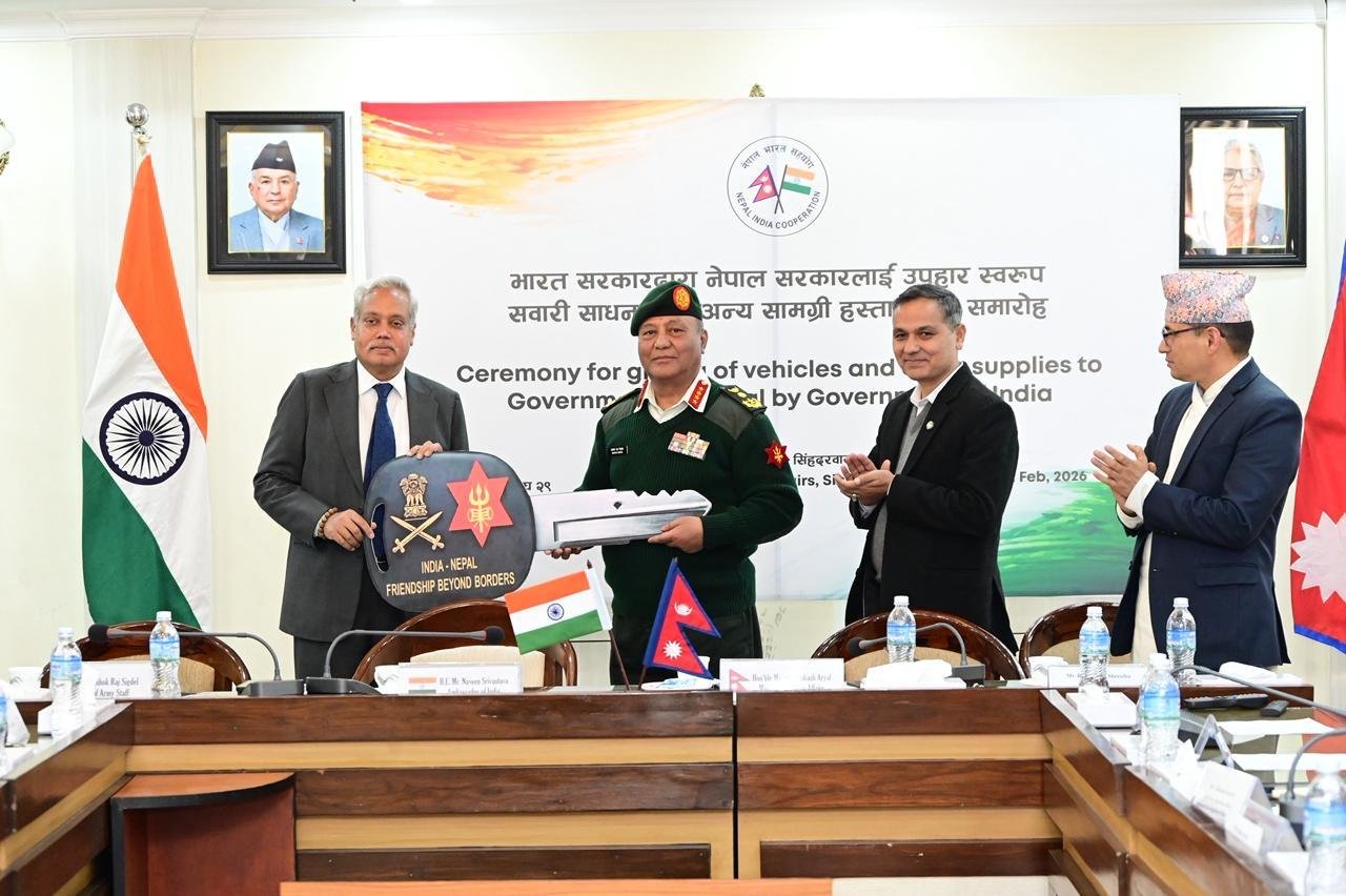 Kathmanndu : The third tranche of election-related assistance from the Government of India to Nepal was ceremonially handed over by Ambassador H.E. Naveen Srivastava to the Hon’ble Minister for Home Affairs of Nepal, Mr. Om Prakash Aryal, at an event held at the Ministry of Home Affairs in Kathmandu on 12 February 2026.