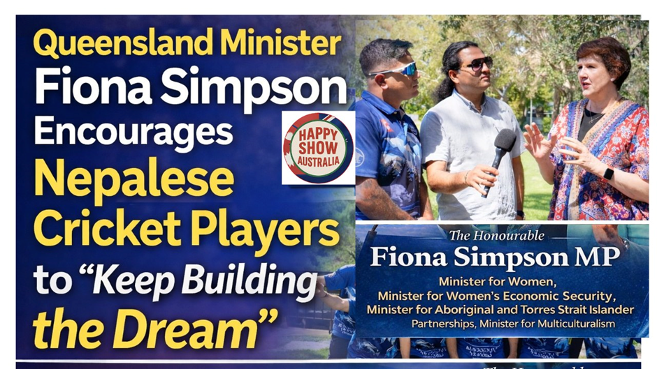 During a community interaction featured on “Happy Show Australia”, the first Nepali talk show from the Nepali community in Brisbane hosted by Bijay Luitel, Minister Simpson met and lauded members of the Nepalese cricket community for their dedication to the sport. The programme is shared through YouTube, Facebook, TikTok, and Instagram.