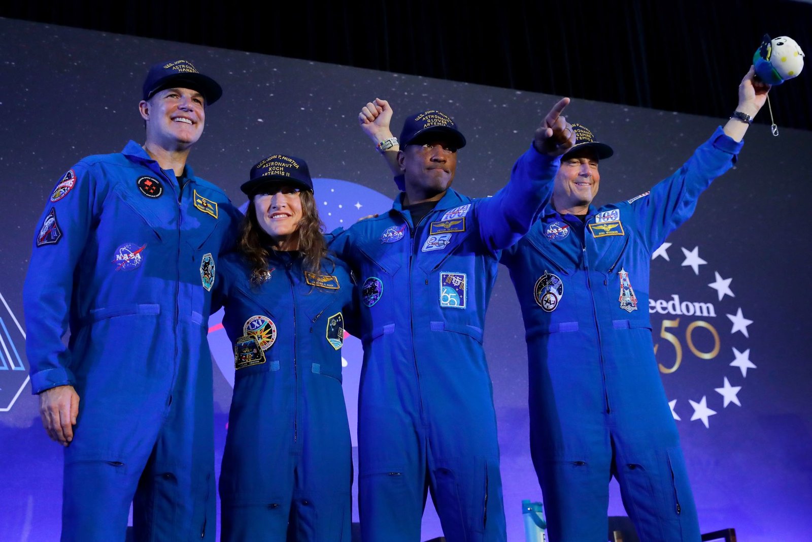 “Ladies and gentlemen, your Artemis II crew,” Isaacman said to a standing ovation.