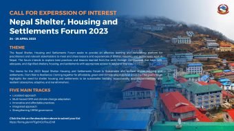 Kathmandu: The Nepal Shelter, Housing and Settlement Forum (NSHSF) event is to be organized on 25 -26 April 2023 in the federal capital Kathmandu.